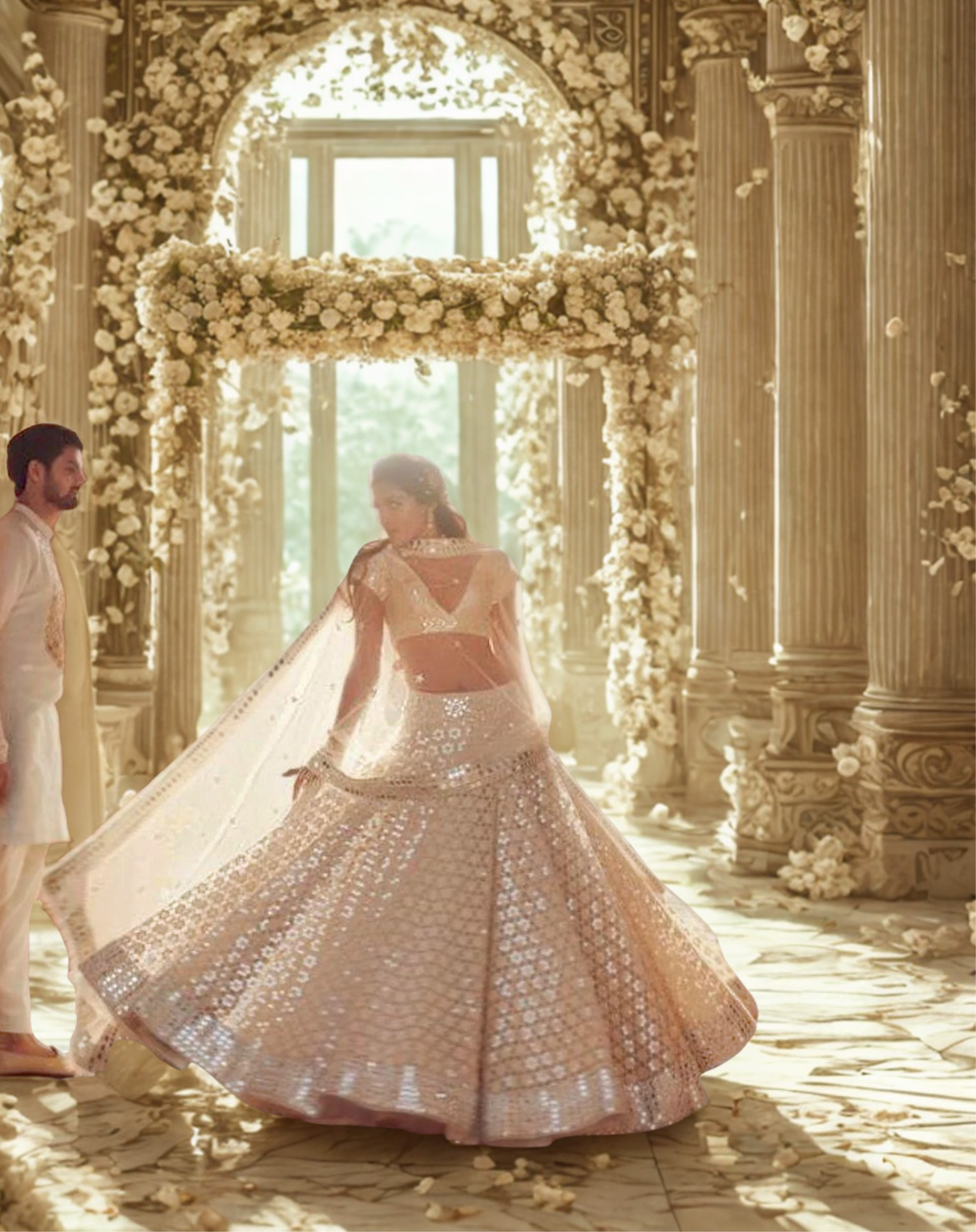 - Color: Ivory (Lehenga, Blouse & Dupatta)